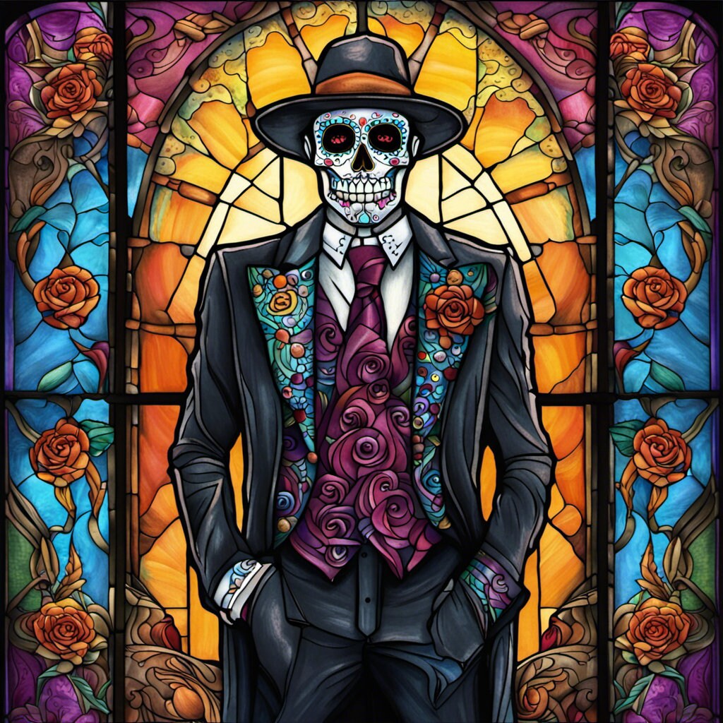 Dia de los Muertos, Day of the Dead, Faux Stained Glass Inspired, Hombre, Groom, Metal Sign, Sublimation Sign, Home Decor (Square)