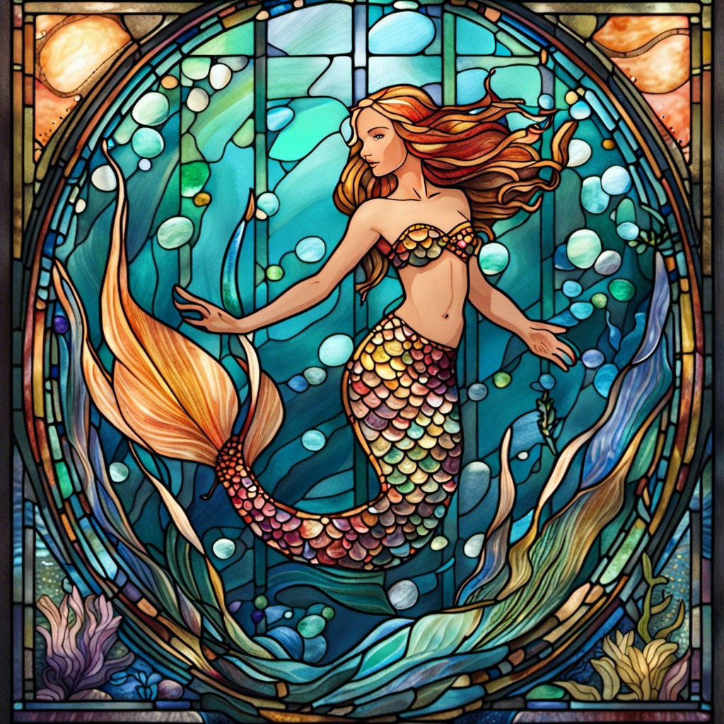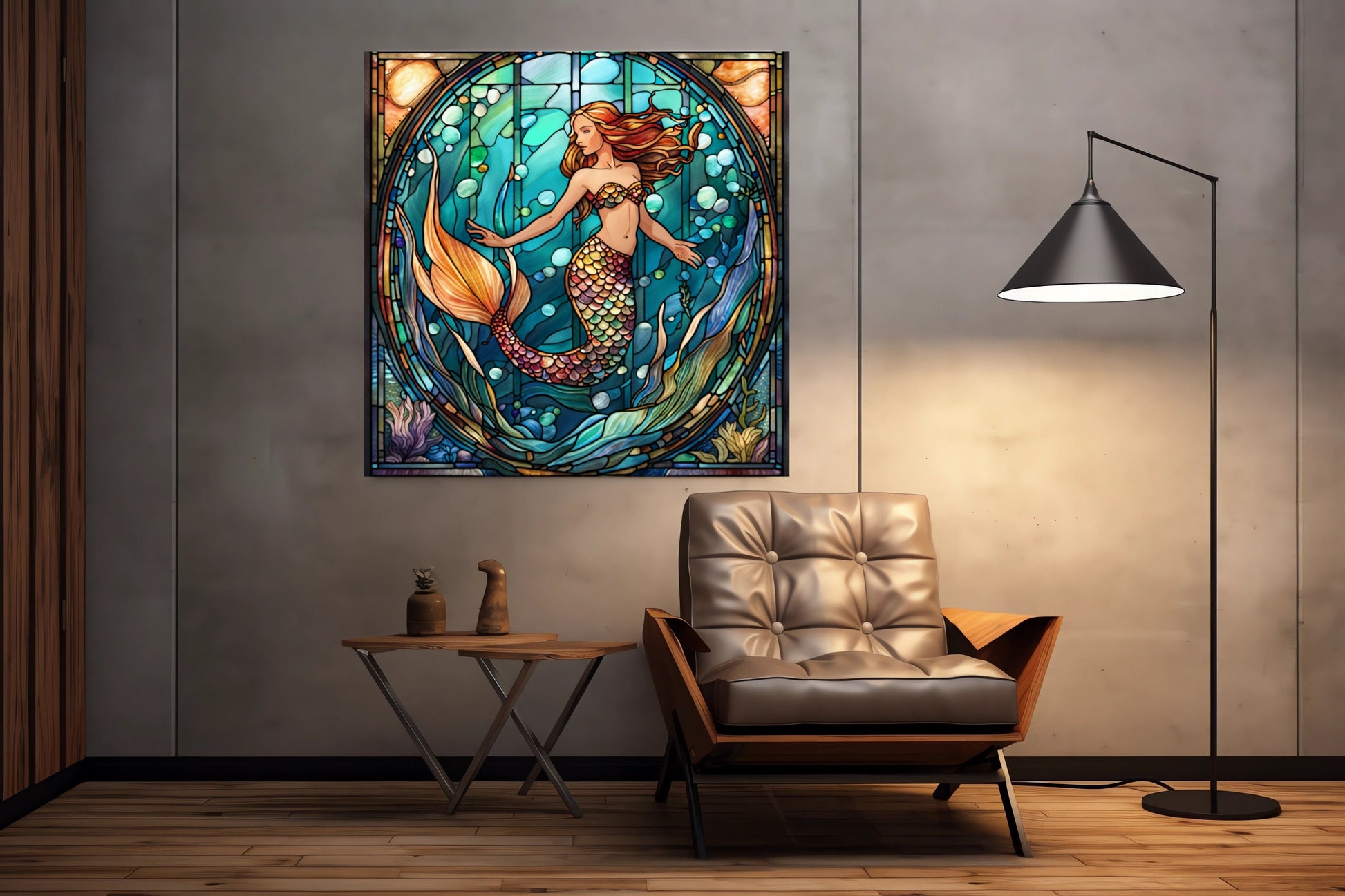 Mermaid, Nautical, Stained Glass Inspired, Metal Sign, Sublimation Sign, Home Decor, Wreath Enhancements, Crafts (Square)