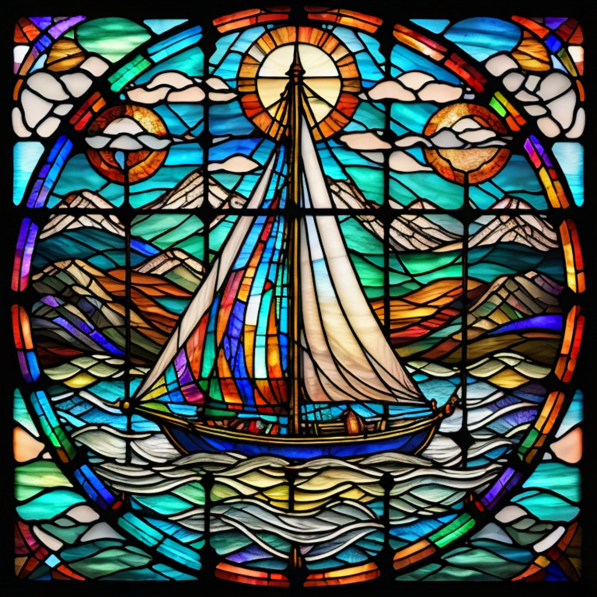 Sailboat, Faux Stained Glass Inspired, Nautical Lovers, Nautical, Metal Sign, Sublimation Sign, Wreath Attachment, Wreath Supplies (Square)