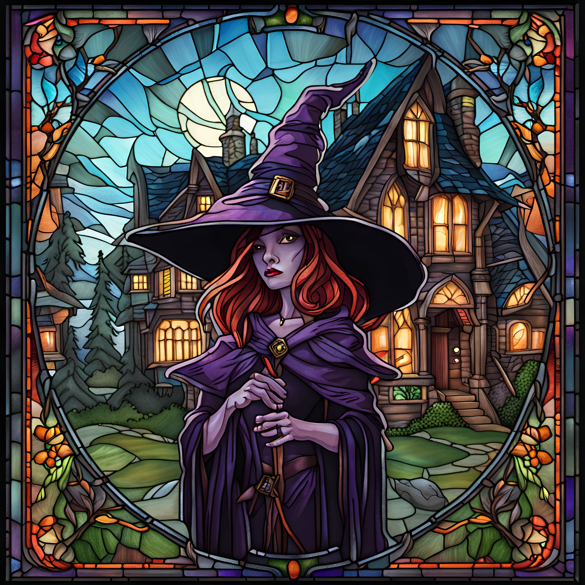 Spooky Witch, Haunted House, Faux Stained Glass Inspired, Halloween Sign, Metal Sign, Sublimation Sign, Wreath Attachment (Square)