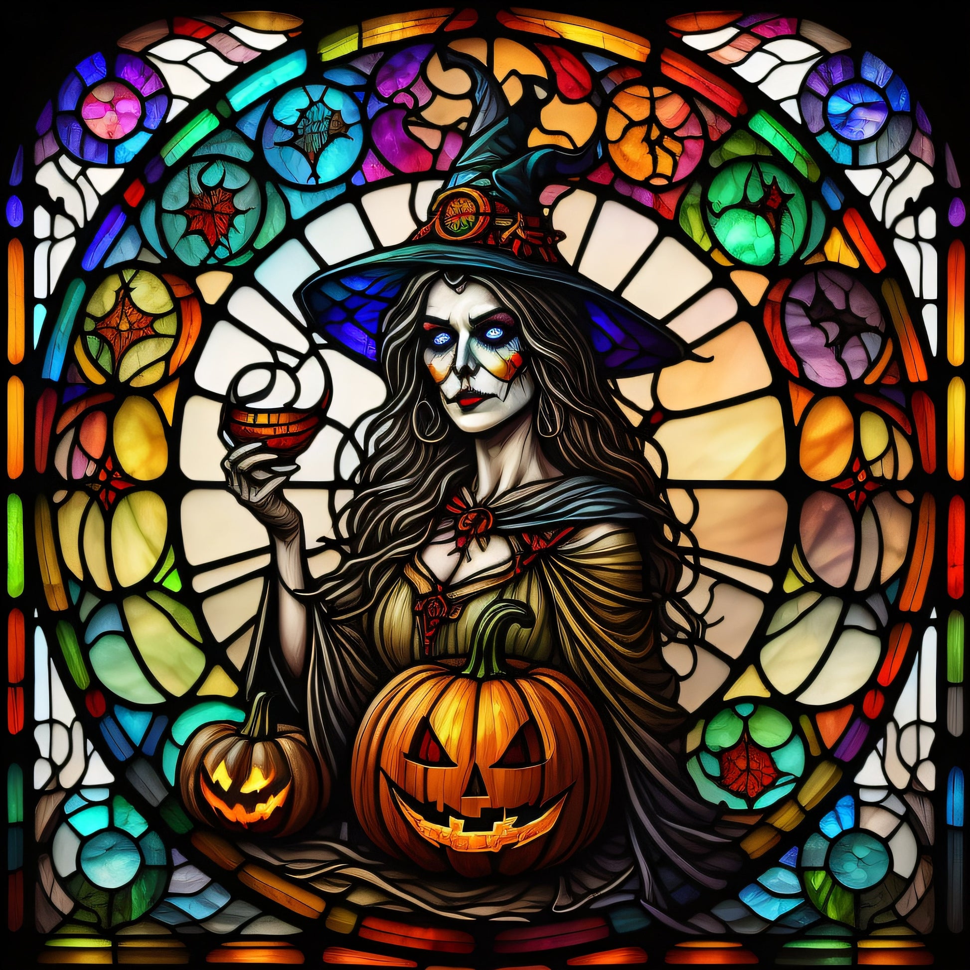 Witch, Jack-O-Lantern, Halloween Decor, Faux Stained Glass Inspired, Sublimation Sign, Metal Sign, Wreath Attachment (Square)
